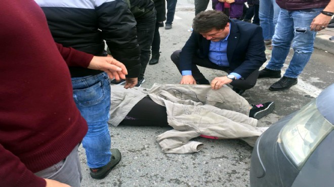 Seçim çalışmalarını dün Küçük Çiğli Mahallesi'nde sürdüren AK Partili Belediye Başkan Adayı Okan Korkmaz, yolun karşısına geçmek isteyen bir kadına otomobilin çarptığını gördü. Beyin cerrahı olan Korkmaz, yaralı kadının yanına koşup, ilk müdahalesini yaptı.