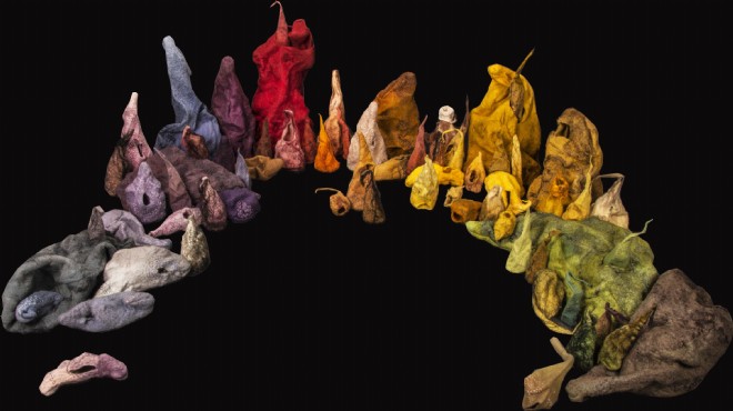 İZMİR - Kadının varlığını, hayat vermesini ve ölümünü keçelerle anlatan İzmir Ekonomili sanatçılar, 20 yıl önce ilk kez yapılan bianelden Türkiye'ye ödülle döndü. İEÜ Moda ve Tekstil Tasarım Bölüm Başkanı Prof. Dr. Elvan Özkavruk Adanır, 20 yıldır kesintisiz yapılan etkinlikte 75 eserin uluslararası ekipten oluşan jüri tarafından değerlendirildiğini ve çalışmalarının çok beğenildiğini söyledi. Kadını keçe üzerinden oluşturdukları objelerle simgelediklerini belirten Prof. Dr. Adanır, "Keçeye üç boyutlu formlar verdik. Bianelde farklı kültürlere ait tekstil sanatı eserleri yer aldı. Biz de Ana Tanrıça figürlerinden yola çıkarak, keçeyle kadını anlatmak istedik. Günümüzde kadınlar şiddete uğruyor. Oysaki kadının ana tanrıça olduğunu göz önüne sermeyi amaçladık" dedi.