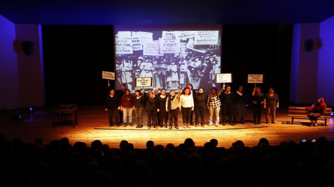 Ülkelerinde kadın hakları için, özgürlükleri için mücadele eden ve tarihe geçen 13 kadın karakter; Sojourner Truth, Clara Zetkin, Rosa Luxemburg, Emma Goldman, Halide Edip Adıvar, Nezihe Muhiddin, Patria, Minerva, Maria Mirabel Kardeşler, Türkan Saylan, Malala Yusufzai kronolojik sırayla verdikleri mücadeleleri dramatize etti. Aralarında amatör oyuncuların da olduğu tiyatro sanatçıları tarafından canlandıran kadınlar verdikleri var olma mücadelesi ve yaşadıkları olayları anlattı. Sahneye çıkan son isim ise Ulu Önder Mustafa Kemal Atatürk’ün annesi Zübeyde Hanım oldu. Zübeyde Hanım kadınlara; “Önce kendinizi iyi yetiştirin ki; sonra kız-erkek demeden evlatlarınızı adaleti, eşitliği bilen, güçlü, cesaretli, vicdanlı, fikri hür nesiller yetiştirin” diye seslendi. Zübeyde Hanım, ‘Ben bir çocuk doğurdum, o çocuk tüm dünyayı değiştirdi” cümlesiyle salondaki kalabalık tarafından ayakta alkışlandı.