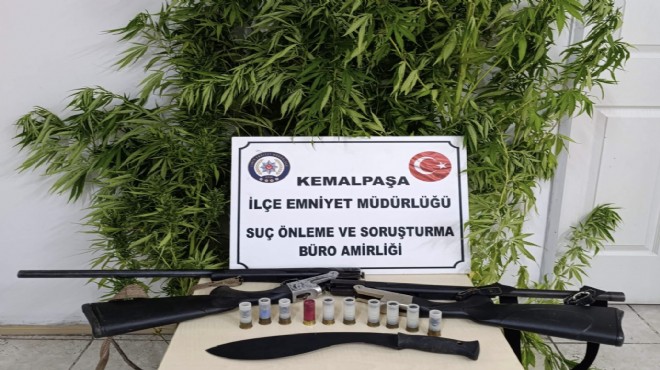 İzmir'in Kemalpaşa ilçesinde evinin bahçesinde Hint keneviri yetiştiren şüpheli gözaltına alındı.