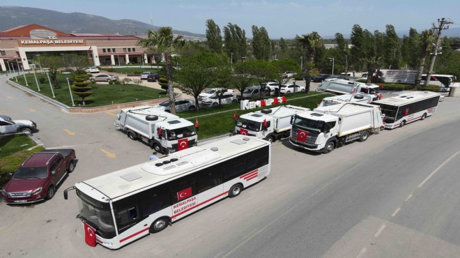 Belediye tarafından daha önce satın alınan bir adet çöp kamyonuyla birlikte faaliyete koyulan toplam 5 yeni çöp kamyonu ve ESHOT Genel Müdürlüğü’nün Büyükşehir Belediye Meclisi kararıyla, Kemalpaşa Belediyesi’ne bedelsiz olarak hibe edilen 2 otobüs kentte sürdürülen çalışmalarda büyük kolaylık sağlayacak. Kemalpaşa Belediyesi tarafından ilçeye kazandırılan araçlar, Türk Bayrakları ile süslenerek şehir turu attı.