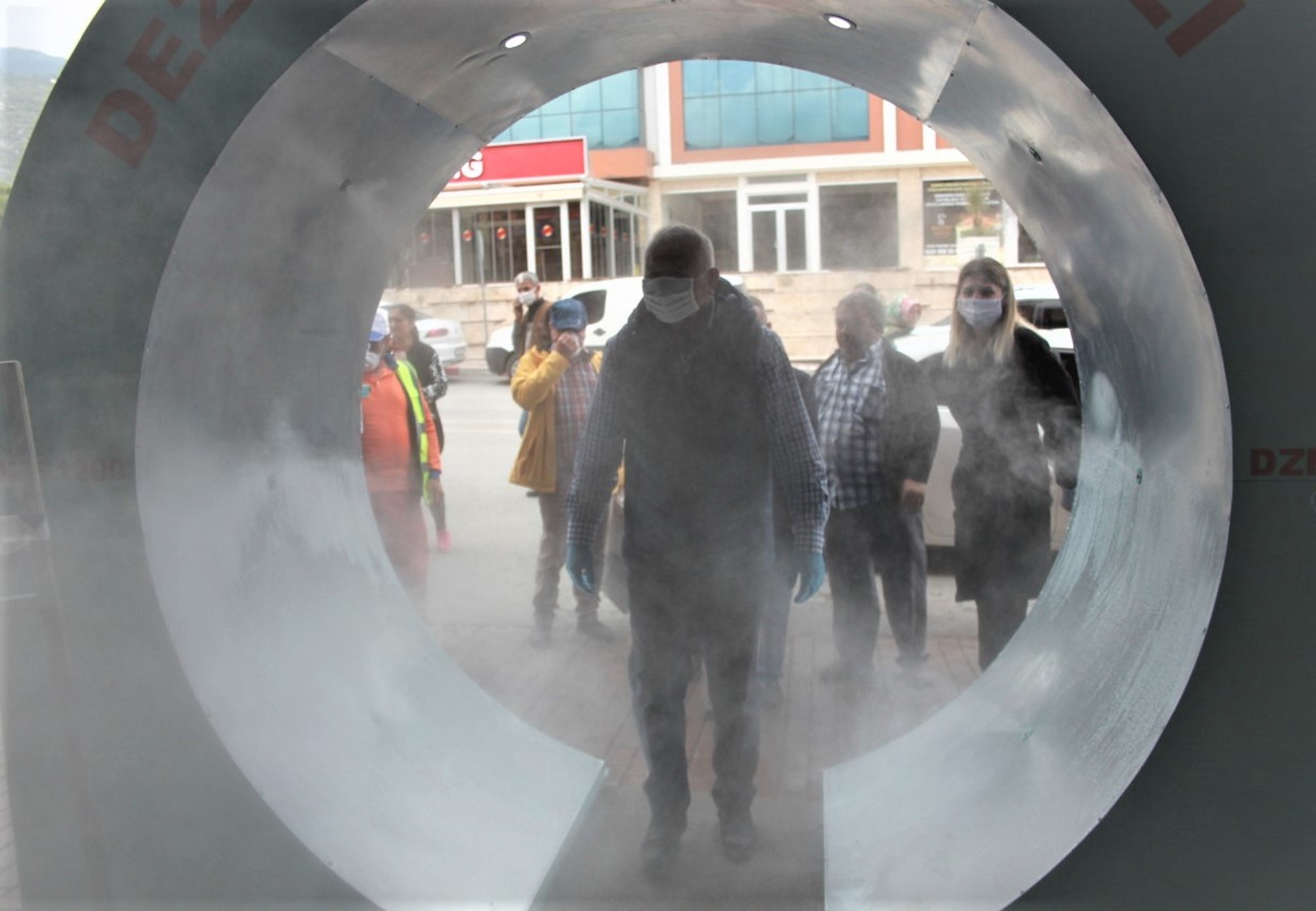 DEZENFEKTE TÜNELİ YÜZDE YÜZ EKOLOJİK SOLİSYON KULLANILDI