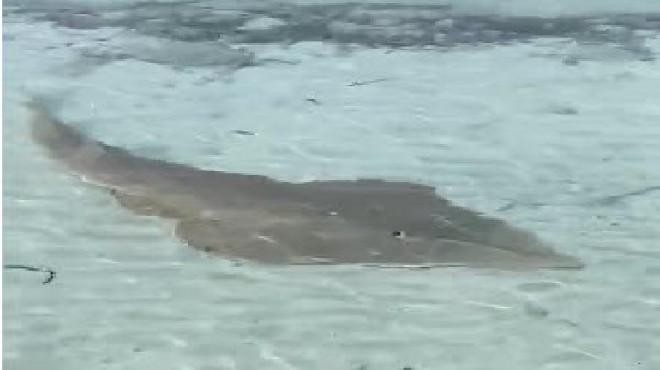 Marmara'da nadiren, Ege ve Akdeniz kıyılardırda sıkça görülen kemane balığı Çeşme ilçesinde görüldü. Sabah saatlerinde bir kişi, Paşalimanı Sahili'nde, yaklaşık 2 metre uzunluğunda bir balık gördü. Büyük bir şaşkınlık yaşayan kişi, balığı yaklaştığında Vatoz ailesine bağlı bir tür olan kemane balığı olduğunu belirledi. Bu kişi, cep telefonu kamerasıyla kemane balığını görüntüledi. (DHA)