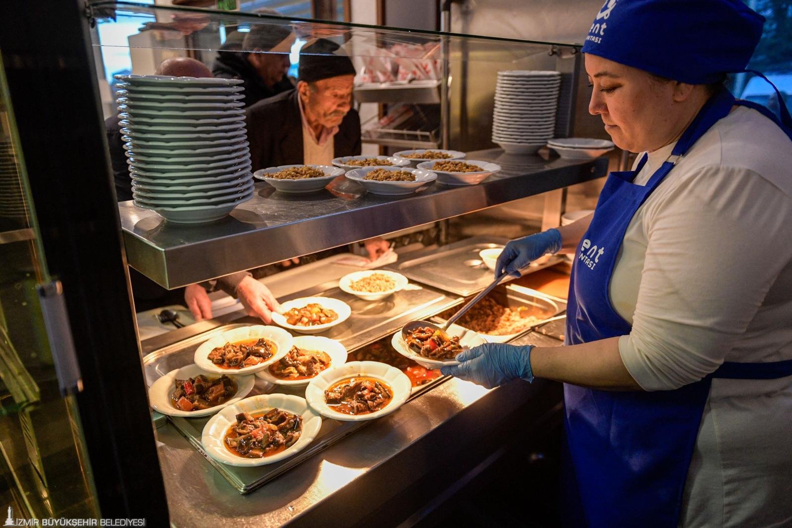 İzmir Büyükşehir Belediye Başkanı Dr. Cemil Tugay’ın ağırlaşan ekonomik koşullar karşısında yurttaşların sağlıklı ve uygun fiyatlı yemeğe erişimini sağlamak amacıyla hizmete açtığı Kent Lokantaları’nda ücretsiz iftar yemeği sunuluyor. Büyükşehir Belediyesi ramazan ayında tüm ilçelerde iftar sofraları kurarken, Kent Lokantaları’nda da dayanışmayı büyütüyor. Karabağlar, Çiğli, Menemen ve Aliağa’da bulunan lokantalardaki iftar yemeği uygulamasına İzmirliler de bağışlarıyla katkıda bulunabiliyor. Yalnızca Kemeraltı Kent Lokantası, çarşıya araç giriş çıkış saatleri ve iftar zamanında bölgenin yoğun olmaması nedeniyle ücretsiz iftar yemeği sistemi dışında tutuldu.