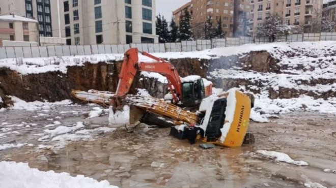 Ataşehir'de suya gömülen iş makinesinin operatörü kayboldu.