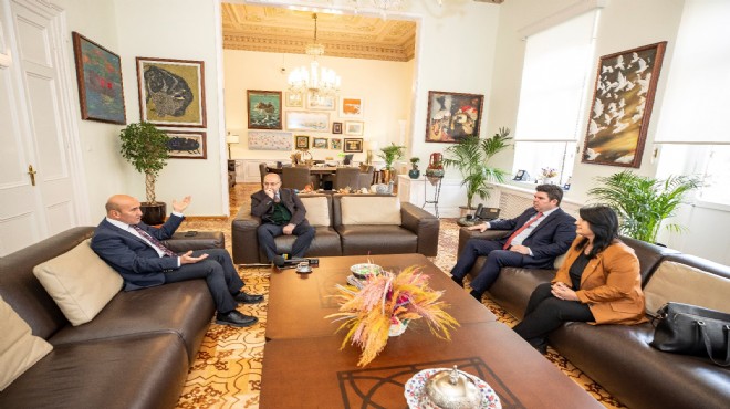 İzmir Büyükşehir Belediye Başkanı Tunç Soyer, Buca Belediye Başkanı Erhan Kılıç ile CHP Buca İlçe Başkanı Hacer Taş Gültepe'yi ağırladı.