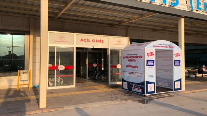 Kınık Belediyesi işçileri tarafından hazırlanan dezenfekte tüneli, Hükümet Konağı ve ilçedeki hastanede kullanıma sunuldu.