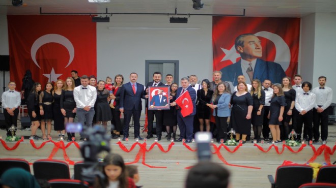 Düzenlenen törenin ardından; Başkan Doğruer ve Kınık Kaymakamı Abdurrahman Çelebi, Kınık Belediyesi Aile Yaşam Merkezlerinde eğitim gören miniklerle bir araya gelerek, Cumhuriyet coşkularına ortak oldular.