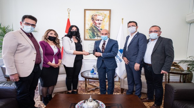 Kiraz Ortaokulu Müdürü Meltem Aytekin, okullarının tadilatı nedeniyle İzmir Büyükşehir Belediye Başkanı Tunç Soyer'e teşekkür ziyaretinde bulundu.