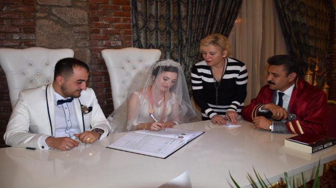 Dikili Belediye Başkanı Adil Kırgöz, Rakasta Otel'de düzenlenen Selcan Gürel ve Ayberk Dalbun çiftinin düğün törenlerinde nikahlarını kıyarak, belediye başkanlığı görevindeki ilk nikahını kıydı.
