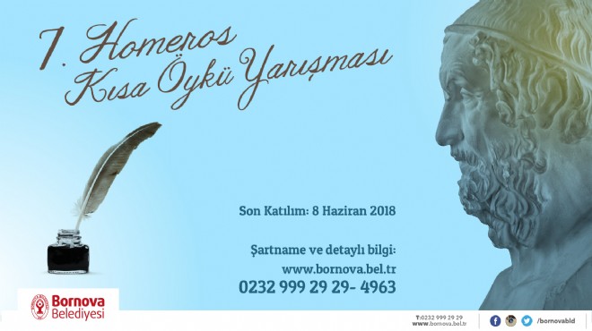 Bornova Belediyesi'nin Türk Edebiyatı'na yeni eserler kazandırmak amacıyla bu yıl 7'ncisini düzenlediği 'Homeros Kısa Öykü Yarışması'na katılmak isteyenler başvurularını 8 Haziran'a kadar yapabilecek. 18 yaşından büyük Türkiye Cumhuriyeti vatandaşlarının katılımına açık olan yarışmada dereceye giren eserlerden birinciye 5 bin, ikinciye 3 bin, üçüncüye ise 2 bin lira ödül verilecek.