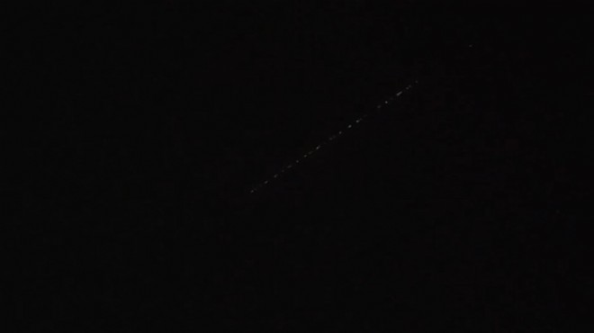 Starlink uydularının görüntüleri İzmir Bostanlı’da vatandaşın kamerasına yansıdı.