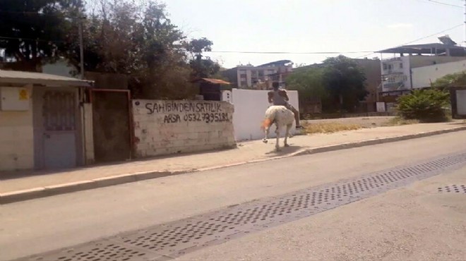 Ayrıca, Gültepe semtinde, bir kişinin boş yolda ata bindiği anlar, vatandaşlar tarafından cep telefonuyla görüntülendi. (DHA)