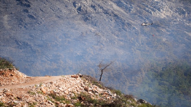 Rüzgarın etkisini yitirdiği bölgede ekipler, yangını kontrol almaya çalışıyor.