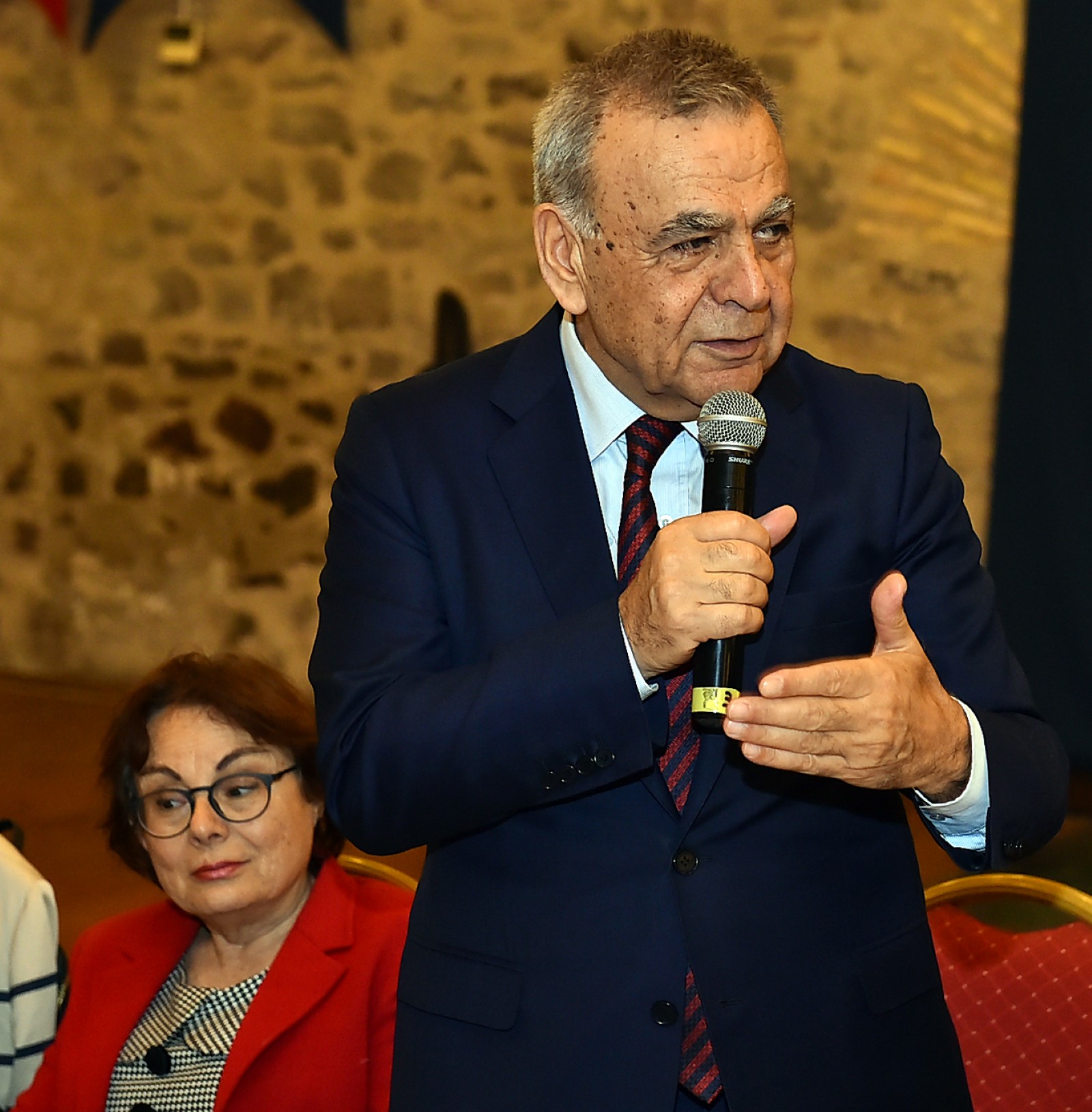 İstanbul gibi gökdelenler kenti olacağı yönündeki endişelere de yanıt veren Başkan Kocaoğlu, “Ahmet Piriştina döneminde sadece Liman Arkası, Salhane, Turan bölgesinde bir yarışma projesi ile gökdelenler bölgesi planları yapıldı. Biz o planlara sadık kalarak uğraştık. Gökdelenler bir bölgede toplansın, geri kalan yerlerde kentin silüeti bozulmasın istedik. 4 milyonluk bir kentte yüksek yapılara ihtiyaç vardır. Eski depoların fabrikaların olduğu bölgede hızlı bir şekilde dönüşüm yaşaması için o zaman başlayan ve bizim sahip çıktığımız planlama Liman Arkası, Salhane, Turan bölgesidir. Diğer yüksek yapılara ne Ahmet Piriştina ne de bizim dönemimizde izin verilmedi. Bu daha önceki dönemde verilmiş, kazanılmış imar hakları ile yapıldı” şeklinde konuştu.