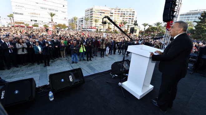 Gazi Mustafa Kemal Atatürk'ün vefatının 80. yıldönümünde, herkesin bu iç hesaplaşmayı yapmak, kendi payına düşen dersleri almak ve titreyip kendimize gelmek zorunda olduğunu ifade eden Başkan Aziz Kocaoğlu, "Gerçekten de Atatürk'e layık bir nesil olmak istiyorsak, hamaseti bir kenara bırakıp, bize emanet ettiği ilkelere ve Cumhuriyet değerlerine gerçekten, tüm samimiyetimizle; gücümüz tükenene ve son nefesimize kadar sahip çıkmalıyız.Küçük menfaatleri, küçük fikir ayrılıklarını bir kenara bırakıp bölünmeden, parçalanmadan mücadele etmeli, Atatürk ve Cumhuriyet düşmanlarının karşısında el ele ve dimdik durmalıyız. Ve asla pes etmemeliyiz! Buna önderlik edecek olan da, Atatürk'ün simge kenti, Cumhuriyet devrimlerinin sarsılmaz kalesi İzmir'dir, İzmirlilerdir. Kimse ka ranlıktan çıkış için başka yollar, başka formüller aramasın. Bizim aydınlık yolumuz Atatürk, umudumuz Cumhuriyet'tir" diye konuştu.
