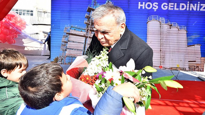 Törenin sonunda Başkan Kocaoğlu, küçük bir sürprizle karşılaştı. Sahne önünde toplanan