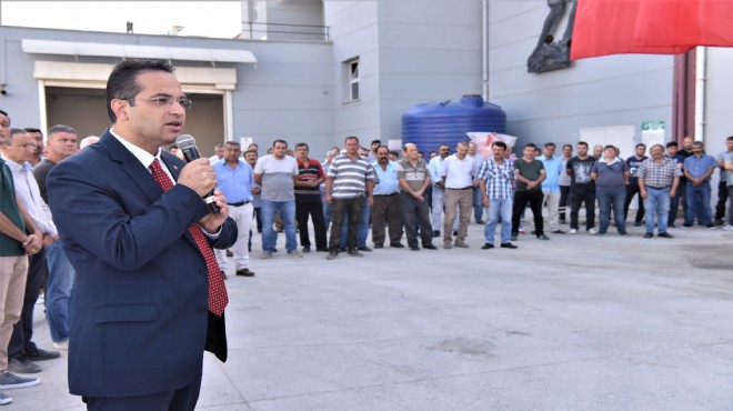 İzmir Büyükşehir Belediye Başkanı Aziz Kocaoğlu, Belediye personeli ile bayramlaşma töreninde buluştu. Tüm çalışanlara mutlu ve sağlıklı bir bayram dileyen Başkan Aziz Kocaoğlu, kentin her bölgesinde yoğun bir şekilde çalışmaya devam ettiklerini belirterek katkı ve emeklerinden dolayı personeline teşekkür etti.