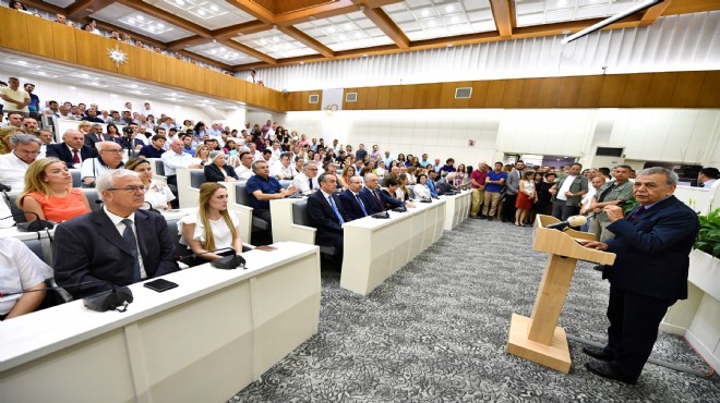 "İzmir Büyükşehir Belediyesi ve hemşehrilerimiz, sıkıntılı geçen 14 yılda birlikte başarmanın mutluluğunu birlikte yaşamalıdır. Biz göğsümüzü gere gere, alnımız açık bir yerel yöneticilik yaptık. Bütün barikat ve zorlamaları hep birlikte aştık. Bir operasyon geçirdik; üst düzey yöneticilerimizin çoğu hapisteyken dışarıda kalanlar onların işlerini de sırtladı. Her türlü oyuna ve baskıya rağmen dimdik ayakta kaldık. Aklın ve bilimin rehberliğinde yolumuza devam ettik. Hemen hemen imkansızı başardık. Bugün sağlam kurduğumuz finans yapısıyla yolumuza devam ediyoruz. Kendi göbeğimizi kendimiz kesebiliyoruz. 'Her yer İzmir gibi olsun' sözünü içi boş bir slogan olarak söylemiyoruz. 14 yıllık çabamızın sonucunda, Türkiye’deki her yerin İzmir gibi aydınlık olmasını istiyoruz. İzmir in sanını; belediyesinin, iş adamlarının vergideki dürüstlüğünü tüm Türkiye örnek alsın diyoruz."