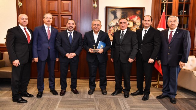 İzmir Büyükşehir Belediye Başkanı Aziz Kocaoğlu, Deniz Ticaret Odası İzmir Şubesi ve Ege Bölgesi Sanayi Odası’nın gençleşen yüzlerinden oluşan yeni yönetimlerini makamında ağırladı.
