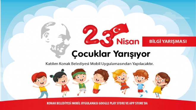 Konak Belediyesi Ulu Önder Mustafa Kemal Atatürk’ün çocuklara armağan ettiği 23 Nisan Ulusal Egemenlik ve Çocuk Bayramı dolayısıyla eğlenceli, mini bir bilgi yarışması düzenliyor. Yarışmaya, ilköğretim okulu 1, 2, 3 ve 4. sınıf öğrencileri katılabilecek. 8 sorudan oluşan yarışma ’ya Konak Belediyesi’nin resmi mobil uygulaması üzerinden katılım sağlanabilecek. Kendilerine yöneltilen sekiz soruyu yanıtlayan ve puan sıralamasında ilk 50'ye giren çocukları sürpriz hediyeler bekliyor.