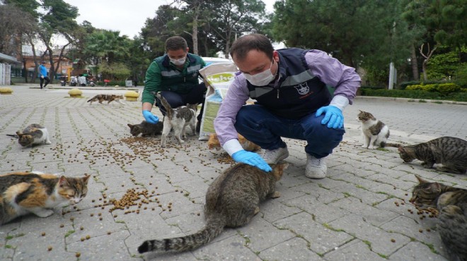 Konak Belediyesi veteriner ekipleri, özellikle pek çok esnafın kepenk indirdiği Kemeraltı Çarşısı, Gıda Çarşısı, sanayi siteleri gibi yerlerde yaşayan can dostlara mama bırakıyor. Dağıtım, ilçe genelindeki mahallelerde, sokak hayvanlarının toplu yaşadığı yerlerde de titizlikle sürdürülüyor. Vatandaşlara seslenerek, ‘evde kal’ çağrısını yinelen Konak Belediye Başkanı Abdül Batur, “Özellikle can dostlarını sahiplenen, onları düzenli olarak besleyen hemşehrilerimiz endişelenmesin: Sokaktaki can dostlarımızı bu sıkıntılı süreçte ihmal etmeyeceğiz. Yeter ki siz evde kalın; onlar bize emanet. Onları bu zor günlerde aç bırakmayız. Konak Meydanı’nın simgesi olan güvercinlerimizi de unutmuyoruz. Ekiplerimiz düzenli olarak güvercinlerimizi de besliyor” diye konuştu.