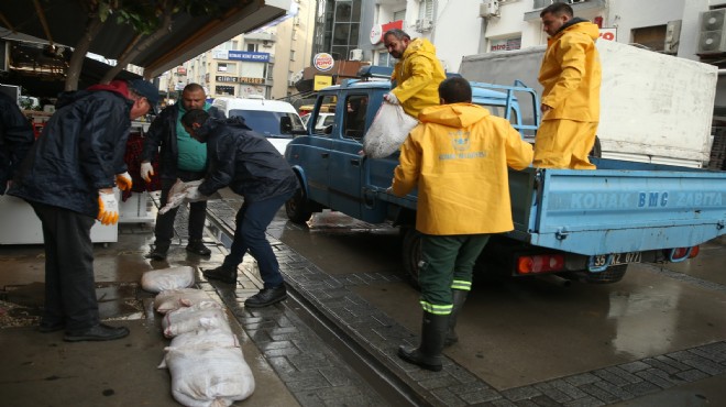 Konak Belediye Başkanı Abdül Batur, İzmir’de günlerdir etkili olan sağanak yağış ve fırtına sebebiyle esnafın daha fazla mağduriyet yaşaması için belediye ekiplerini seferber etti. Özellikle Alsancak bölgesinde deniz seviyesinin de yükselmesiyle işyerleri su alan esnafa hem temizlik hem işgaliye desteği sağlayan Konak Belediyesi, yinelenen sel, su baskını, yıldırım, fırtına uyarısının ardından esnafa kum torbası dağıttı. Kordon ile paralel cadde ve sokakları başta olmak üzere bölgedeki esnafa 1000’in üzerinde kum torbası verildi.