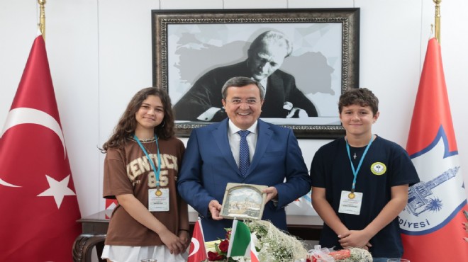 Konak Belediyesi’nin de yer aldığı “Avrupa Birliği Kardeş Okul” projesi kapsamında İtalya’dan İzmir’e gelen Istituto Cmoprensivo Pascoli Matera Okulu’nun öğrencileri, İzmir Misak-ı Milli Ortaokulu öğrencileriyle birlikte Konak Belediye Başkanı Abdül Batur’u ziyaret etti. Batur, “Kardeş Okul Anlaşması” protokolüyle proje çalışmalarını yürüten İzmir Misak-ı Milli Ortaokulu ile Istituto Cmoprensivo Pascoli Matera Okulu’ndan 18 öğrenciyi, okul yöneticileri ve öğretmenleriyle birlikte makamında ağırladı. Batur, öğrencilere Konak’la ilgili bilgiler vererek, yerel yönetim olarak yaptıkları çalışmaları aktardı.