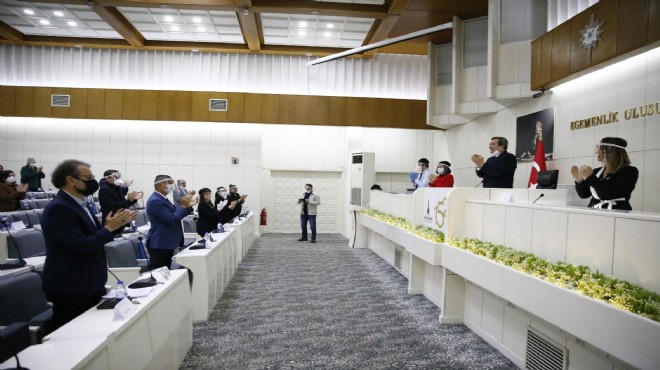 Konak Belediyesi nisan ayı olağanüstü meclisinde, başta sağlık çalışanları olmak üzere salgın sırasında çalışan tüm meslek grupları bir dakika boyunca ayakta alkışlandı.