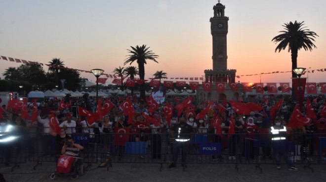 İzmir Konak Meydanı'nda 15 Temmuz hain darbe girişiminin 5'inci yılı nedeniyle anma töreni düzenlendi. Törene İzmir Valisi Yavuz Selim Köşger, İzmir Büyükşehir Belediyesi Başkan Vekili Mustafa Özuslu, Ege Ordu Komutanı Korgeneral Ali Sivri, AK Parti İzmir İl Başkanı Kerem Ali Sürekli, MHP İzmir İl Başkanı Veysel Şahin, Büyük Birlik Partisi İzmir İl Başkanı Erdem Öksüz, Ege Üniversitesi Rektörü Prof. Dr. Necdet Budak, sivil toplum kuruluşlarının ve odaların temsilcileri katıldı.