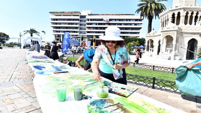 Büyükşehir Belediyesi’nin ev sahipliğinde, Uluslararası Suluboya Derneği işbirliğiyle düzenlenen 7. Uluslararası Sanat Yoluyla Sevgi, Barış ve Hoşgörü Suluboya Festivali ve Altın Fırça Yarışması, üç günün ardından kapanışı İzmir’in sembolü Saat Kulesi’nde yaptı. 42 farklı ülkeden suluboya sanatçılarının İzmir’de buluştuğu festivalin son gününde Saat Kulesi’nin çevresinde 70 metrelik İzmir konulu resimler konuk sanatçılarla boyandı.