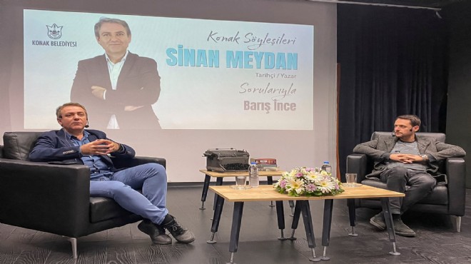 Konak Belediyesi’nin, Türkiye’nin önemli düşün ve sanat insanlarını İzmirlilerle buluşturan etkinliği Konak Söyleşileri, tarihçi yazar Sinan Meydan’ı konuk etti. Meydan, Türkan Saylan Kültür Merkezi Benal Nevzat Salonunda düzenlenen etkinlikte gazeteci yazar Barış İnce’nin sorularını yanıtladı. Barış İnce, yeni kitabı için cumhuriyeti kuran meclisin raporlarını okuyan Sinan Meydan’a hem cumhuriyetin kuruluş döneminde yaşananları hem de günümüz Türkiye’sine dair değerlendirmelerini sordu. Meydan, söyleşi sonunda okurları için kitaplarını da imzaladı.