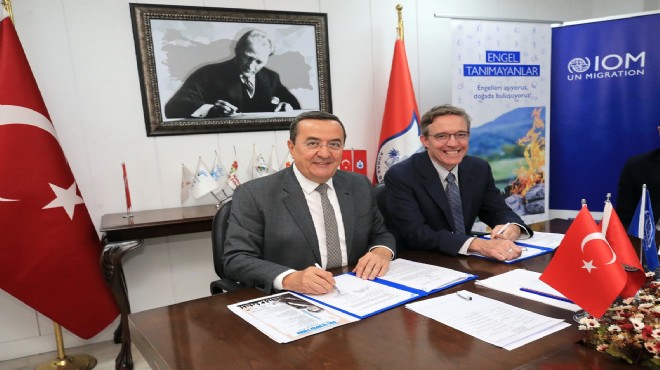 Konak Belediyesi’nin Uluslararası Göç Örgütü’nden (IOM) 49 bin 978 dolar hibe desteği almaya hak kazanan Engel Tanımayanlar Projesi için imzalar atıldı.Topluluklar arasındaki iletişimi güçlendirme, engellilik hakkında farkındalık yaratma hedefiyle hazırlanan projenin imza törenindekonuşan Konak Belediye Başkanı Abdül Batur, dezavantajlı kesimler ve göçle gelenler de dahil olmak üzere sınırlarında yaşayanlara doğru hizmeti vermenin yerel yönetimlerin en önemli görevi olduğunu belirterek, projenin kendilerini çok heyecanlandırdığını vurguladı. Uluslararası Göç Örgütü Acil Durum Koordinatörü David Savard ise yerel yönetimlerin göç yönetiminde kilit bir role sahip olduklarına dikkat çekerek, BaşkanBatur ile ekibine projeye sağladıkları yüksek enerji, azim ve hayata geçirme kararlılığı için teşekkür etti.