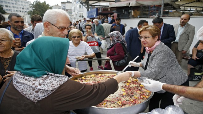 Konak Belediyesi her yıl olduğu gibi bu yıl da Muharrem ayında binlerce kişilik aşure kazanları kaynatarak, gönülleri dostluk ve barış ekseninde buluşturmaya devam ediyor. Konak Belediyesi Sosyal Yardım İşleri Müdürlüğü’nce ilçenin farklı noktalarına kurulan aşure kazanları bu kez Hatay Kapalı Pazaryeri'nde kuruldu. Sadece Konak’tan değil İzmir’in her yerinden alışverişe gelenlerin olduğu pazarda toplam bin 500 kişilik aşure dağıtımı yapıldı. Hazırlanan aşureler sıcak sıcak yerinde servis edildi. Aşure ikramına Konak Belediye Başkanı Sema Pekdaş da katıldı. Pekdaş, aşure kazanın başına geçerek ilk ikramı yaptı. Başkan Pekdaş, bir yandan aşure ikram ederken bir yandan da vatandaşlarla sohbet etti. Pazarı da gezen Pekdaş, hem esnafın hem de pazara gelen vatandaşlara bolluk ve bereket dolu günler diledi.