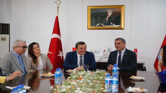 İYİ Parti İzmir İl Başkanı Hüsmen Kırkpınar ve yönetim kurulu üyeleri Konak Belediye Başkanı olarak görevine başlayan Abdül Batur’u makamında ziyaret ederek, başarılar dilediler. İzmir ve Konak’ta yaşayan vatandaşlar adına Başkan Abdül Batur’u kutlayan Hüsmen Kırkpınar, “Yeni göreviniz hayırlı, uğurlu olsun. Allah sizi mahcup etmesin. Narlıdere’deki tecrübeleriniz Konak’a da nasip olsun. Narlıdere’yi çocukluğumdan bu yana tanırım. Narlıdere’yi çok iyi bir yere getirdiniz” dedi.