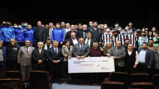 Konak Belediyesi’nin amatör spor kulüplerine nakdi destek geleneği, Selahattin Akçiçek Kültür Merkezi’nde düzenlenen törenle bu yıl da devam etti. Törene kendisi de hem oyuncu hem de yönetici olarak spor kökenli olan Konak Belediye Başkanı Abdül Batur’un yanı sıra CHP Konak İlçe Başkanı Akın Küçükoğullarından, İzmir Amatör Spor Kulüpleri Federasyonu Başkanı Efkan Muhtar, Türkiye Futbol Adamları Derneği Başkanı Bahri Vreskala, Konak Amatör Futbol Kulüpleri Birliği Başkanı ve Konak Belediye Meclisi üyesi Mehmet Şerif Demir, Türkiye Futbol Antrenörleri Derneği (TÜRFAD) Yönetim Kurulu Üyeleri, amatör spor kulüplerinin başkan ve yöneticileri, Konak Belediyesi Meclis Üyeleri, muhtarlar ve sporcular katıldı. “Mustafa Kemal Atatürk’ün bize emanet ettiği gençlerimizi en iyi şekilde yetiştirmek ve geleceğe hazırlamak görevimiz” diyen Başkan Batur, kulüplerden gelen destek artış talebini kırmadıklarını, hatta yüzde 50 artırarak enflasyonu geçtiklerini dile getirdi.