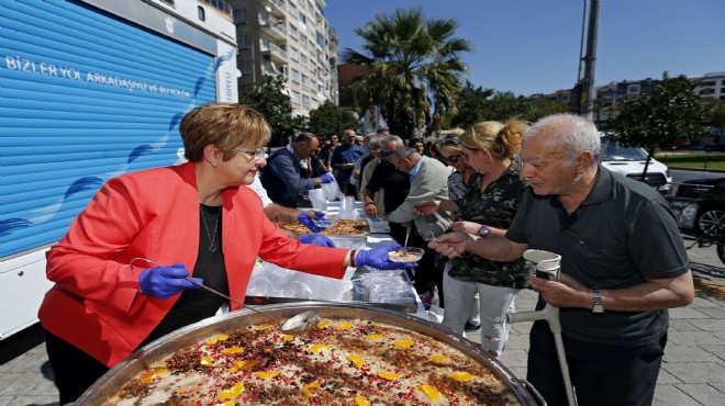 ?Aşure kazanından ilk dağıtım Konak Belediye Başkanı Sema Pekdaş’ın elinden oldu. Yaklaşık bin 500 kişiye aşure ikram edildi. Vatandaşların yoğun ilgi gösterdiği aşure ikramına Başkan Pekdaş’ın yanı sıra muhtarlar ve meclis üyeleri de katıldı.
