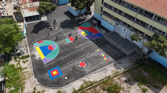 Konak Belediyesi Kentsel Tasarım ve Fen İşleri Müdürlüklerinin ortak çalışmasıyla okullara çıkan sokaklarda hayata geçirilen “Renkli Yol” uygulaması, çerçevesi genişletilerek okul bahçelerine de yayıldı. Çocukların güvenliği ve neşesini artıran uygulama kapsamında Kestelli Şerife Eczacıbaşı Ortaokulu ve Sarıkamış İlkokulu bahçeleri yeniden düzenlenerek yepyeni bir görünüme kavuştu. Her iki okulun da eskimiş ve yıpranmış bahçe zeminleri kazılarak sıfırdan asfalt serildi. Yenilenen asfalt yüzeye, uygun oranlarda basketbol sahaları çizildi. Sarıkamış İlkokulu’nun basketbol sahasının orta alanına resmedilen basketbol topu ise çocuklardan tam not aldı.