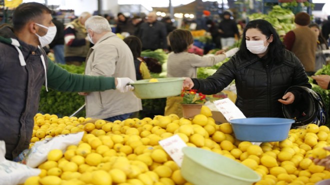 Esnafın haftada üç gün tezgah açtığı Hatay Pazaryerinde düzenli dezenfekte çalışmaları yürüten Konak Belediyesi ekipleri, esnafı ve vatandaşı virüse karşı alabilecekleri önlemler konusunda bilgilendiriyor. Pazaryerindeki zabıta noktasından yapılan anonslar ile esnafa maske ve eldiven kullanması hatırlatılırken, vatandaşlardan da herkesin sağlığı için duyarlı olmaları ve alışverişlerini el ile seçerek yapmamaları isteniyor. Meyvenin ve sebzenin en tazesini alabilmek için pazarları tercih eden Konaklılar, belediye görevlilerinin de hatırlatması ile alışverişlerinde maske ve eldiven kullanıyor. Pazarcı esnafı da uyarıları dikkate alarak tezgâhlarından alışveriş yapan vatandaşlardan ürünleri el ile seçmemelerini isteyerek torbaları müşteriler için kendileri dolduruyor.
