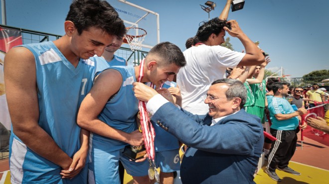 Konak Belediyesi’nin 19 Mayıs Atatürk’ü Anma, Gençlik ve Spor Bayramı kutlamaları kapsamında düzenlediği Sokak Basketbolu Turnuvası’nda kupa ve madalyalar sahiplerini buldu. Göztepe sahildeki basketbol sahalarında gerçekleşen turnuvanın ödül törenine Konak Belediye Başkanı Abdül Batur, Güzelyalı Mahalle Muhtarı Nedim Altan, Mehmet Ali Akman Mahalle Muhtarı Hüseyin Civelek, Konak Belediyesi Meclis Üyeleri, turnuvaya katılan okulların yönetici, öğretmen ve öğrencileri katıldı. Konak’taki ortaokul ve liselerden 55 takımın mücadele ettiği turnuva sonunda dereceye giren takımlar kupalarını Mustafa Kemal Atatürk için kaldırdı.