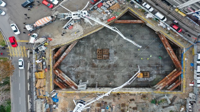 Konak Belediyesi’nin 30 Ekim 2020 yılında meydana gelen depremde hasar aldığı için yıkılan ve eski yerinde yükselecek yeni hizmet binası, işlevselliği ve görselliğiyle de dikkat çekecek. Yüklenici firma tarafından hızla sürdürülen inşaat çalışmaları kapsamında zeminin diyafram duvarları ve fore kazık sistemiyle güçlendirilmesinin ardından temel betonu da atıldı. Akşam saatlerinde başlayan beton atma işi sabahın erken saatlerine kadar devam etti. 2’si bodrum, 8’i normal ve biri asma kattan oluşacak yaklaşık 12 bin metrekarelik inşaat alanına sahip binada, idari birimlerin yanı sıra meclis ve sergi salonları da yer alacak.