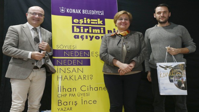 Konak Belediyesi’nin Eşitlik Birimi 10 Aralık İnsan Hakları Günü’nde düzenlenen törenle hizmete açıldı. Kadın, Sosyal Politikalar ve Projeler Müdürlüğü bünyesinde yer alan birim; üniversiteler, kamu kurumları ve STK’larla işbirliği içinde çalışmalar yapacak. Kamudaki tüm faaliyetlerde eşitliğinin ön planda tutulması için çalışacak birimin açılış töreninde Cumhuriyet Halk Partisi (CHP) Parti Meclisi (PM) Üyesi İlhan Cihaner ile Gazeteci-Yazar Barış İnce’nin konuşmacı olduğu ‘Neden Eşitlik Neden İnsan Hakları’ başlıklı söyleşi de gerçekleştirildi.