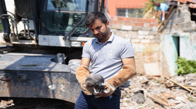 Konak Belediyesi’nin ilçe genelinde sürdürdüğü, vatandaşın can ve mal güvenliği ile huzurunu tehdit eden metruk binaların yıkım çalışmaları bu kez yürekleri ısıtan görüntülere sahne oldu. Zeybek Mahallesi 2426 Sokak üzerinde bulunan metruk binanın yıkımı sırasında belediye işçileri binada iki yavru kedi olduğunu fark etti. Hemen Veteriner İşleri Müdürlüğüne haber veren işçiler, tüm çalışmayı durdurarak yavru kedilerin güvenli bir şekilde binadan çıkarılmasını bekledi. Fen İşleri Müdürlüğü yıkım ekibi, Veteriner İşleri Müdürlüğü ekiplerinin yavru kedileri bulundukları yerden çıkarıp güvene almasının ardından çalışmaları yeniden başlatarak metruk binanın yıkımını tamamladı.