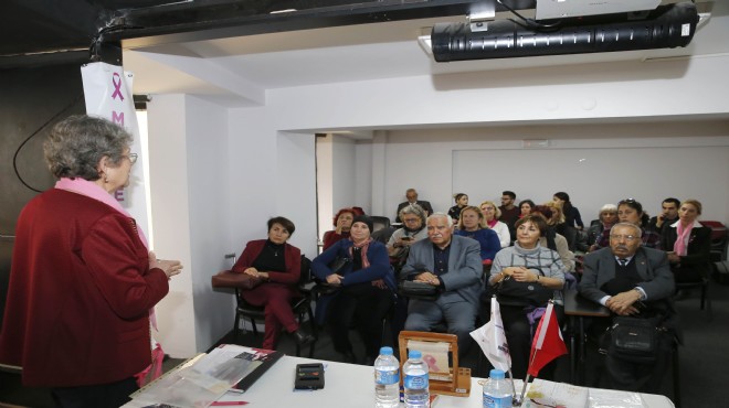 Konak Belediyesi ve Meme Kanseriyle Savaşım Derneği’nin ortaklaşa düzenlediği ‘Meme Kanseri ve Korunma Yönetimi’ konulu seminer yoğun ilgi gördü. Konak Belediyesi’nin Alsancak Türkan Saylan Kültür Merkezi’nde gerçekleştirilen etkinliğe meme kanserine yakalanmış hastalar ve yakalanma riski bulunan kadınlar katılım gösterdi. Meme Kanseri ile Savaşım Derneği Başkanı Çiğdem Beşkardeş, üç kez yakalandığı kanseri büyük bir azimle yenen öğretmen Güldane Açacak ve ona her zaman destek olan eğitimci-yazar eşi Hasan Açacak’ın konuşmacı olarak katıldığı etkinlikte meme kanserine yakalanan kadınlara umut aşılandı.
