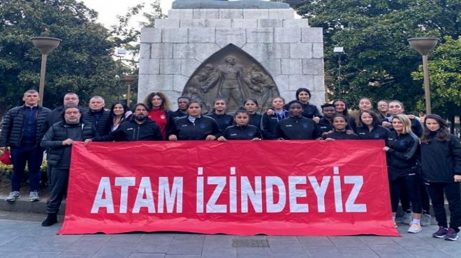 Konak Belediyesi Kadın Futbol Takımı, Turkcell Kadınlar Süper Ligi 2021-2022 sezonu devre arasına galibiyetle girdi. Samsun deplasmanında İlkadım Belediyesi Yabancılar Pazarıspor’u 2-1 mağlup eden mavi beyazlı ekip, maç sonrası, geçtiğimiz günlerde uğradığı çirkin saldırıyla gündeme gelen Atatürk Anıtı’nı ziyaret etti. Konak Belediyespor’un kadın futbolcuları “Atam İzindeyiz” yazılı pankart açarak Ulu Önder Mustafa Kemal Atatürk’e, başta Cumhuriyet olmak üzere bıraktığı eser ve değerlerine sahip çıkacaklarının sözünü verdi.