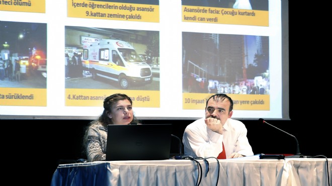 ‘Asansör Kazalarında Denetim ve Güvenlik’ adıyla düzenlenen seminer Konak Belediyesi Selahattin Akçiçek Kültür Merkezi’nde gerçekleştirildi. Etkinlikte Makine Mühendisleri Odası İzmir Şubesi’nden Çiçek Şimşek Yıldız ve Zafer Güneş, asansör kontrollerinin önemi, bu kontrollerin nasıl yapılacağı, kontrol sırasında asansör bakımcılarına düşen yükümlülükler, en çok okunan kaza haberleri ve güvenlik önlemleriyle ilgili yaptıkları kapsamlı açıklamalarda bulundu.