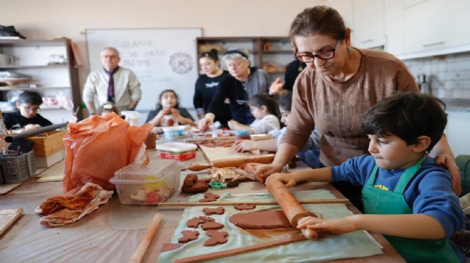 Sosyal belediyecilik anlayışıyla hizmet üreten Konak Belediyesi, 55 yaş üzeri vatandaşları sosyal yaşamın içinde tutan, emek ve üretimlerine değer katan İleri Yaş Sağlıklı Yaşam Merkezi’nde anlamlı bir etkinliğe imza attı. Yarıyıl tatilini fırsat bilen torunlarıyla bir araya gelen merkezin ileri yaş kursiyerleri, resim, seramik, takı, keçe, heykel yapımı gibi sanatın çeşitli dallarında edindikleri hünerleri torunlarına aktarmanın ve onların heyecanlarına ortak olmanın mutluluğunu yaşadı.