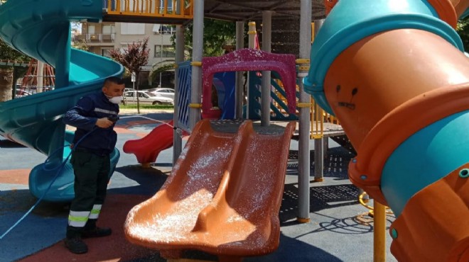 Konak Belediyesi, yaklaşık iki aydır sokağa çıka yasağı uygulanan ve 13 Mayıs’ta ilk kez dışarı çıkacak olan çocuklar için parkları ve oyun alanlarını tertemiz koronavirüs tedbirleri dahilinde dezenfekte ediyor.