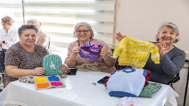 Ziya Zişan Saadet Aytulun Kardeşler İleri Yaş Sağlıklı Yaşam Merkezi örgü sınıfı kursiyerleri, ayda iki kez gönderdikleri örgü işleri için yıl boyu emek verdiklerini dile getirdi. Eğitmen Keriman Şengünler, sevgi ağı oluşturduklarını ifade ederek, “Örgü kursumuzda bir iyilik hareketi başlattık. Doğudaki çocuklarımıza, LÖSEV’e, kanserle mücadele eden çocuklarımıza boyunluk, bere, yelek örerek gönderiyoruz. Bunu her sene ayda iki kez yapıyoruz. Hem kendileri hem yürekleri ısınıyor. İzmir’den çocuklarımıza, ilmek ilmek örerek gönderdiğimiz bir sevgi ağı oluşturduk” dedi.