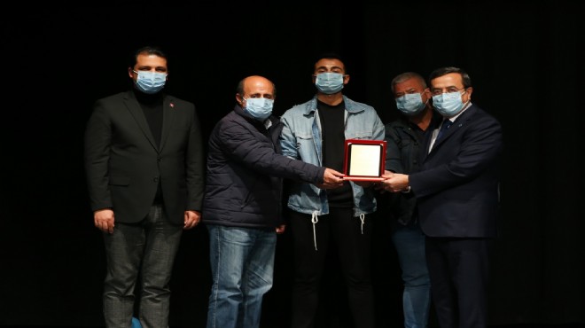 Etkinliğin sonunda Başkan Abdül Batur’a, hastalıkla mücadeleye verdiği destekten ötürü Ege Diyabetliler Derneği’nin rozeti takıldı.